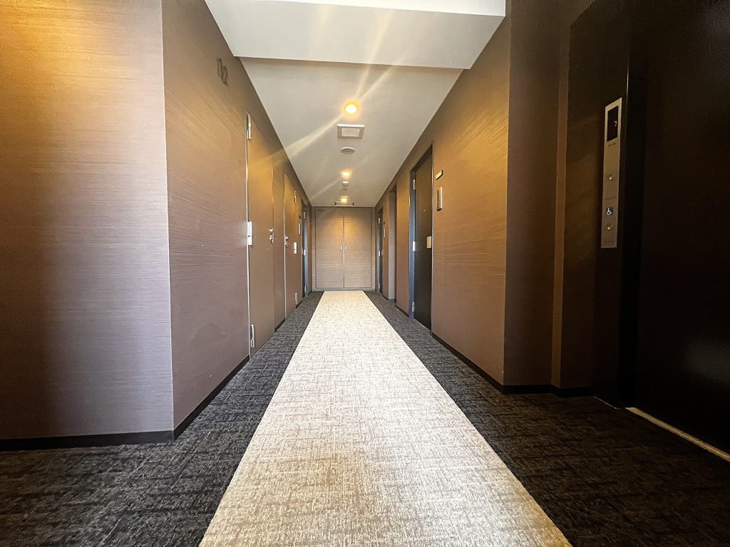 また、外からの騒音が聞こえにくく、廊下の床がカーペット敷きのため、足音や話し声が響きにくいという利点もあります。