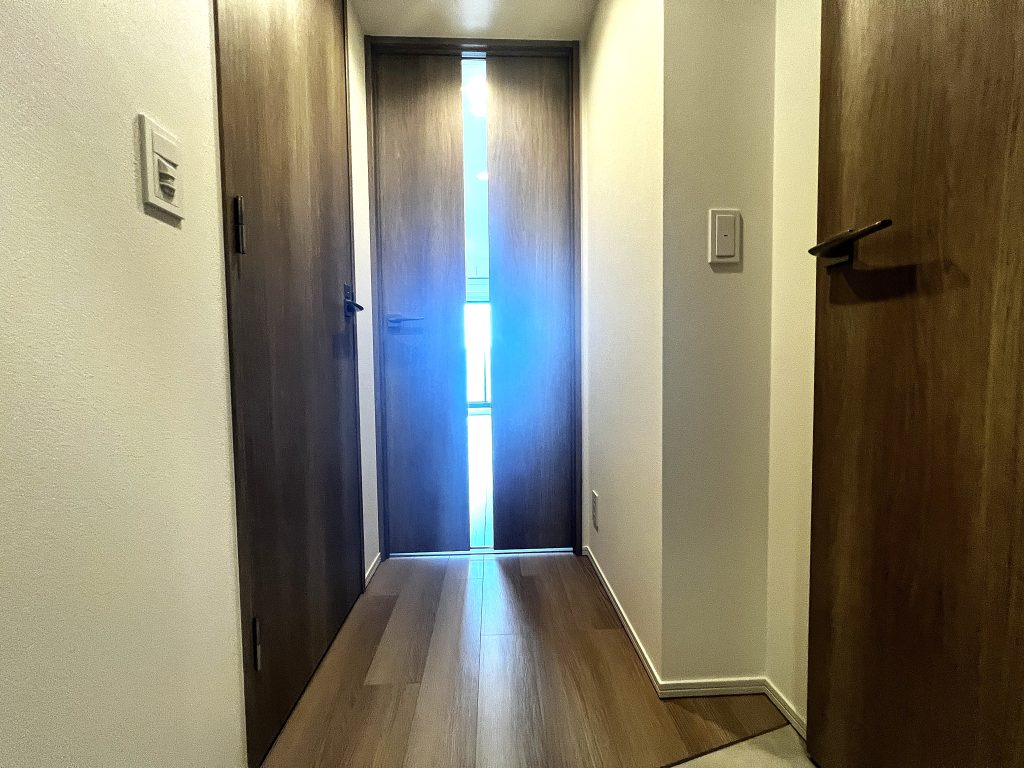 エントランスやと繋がっているため、防犯カメラなども設置されており、セキュリティ面でも安心感があります。