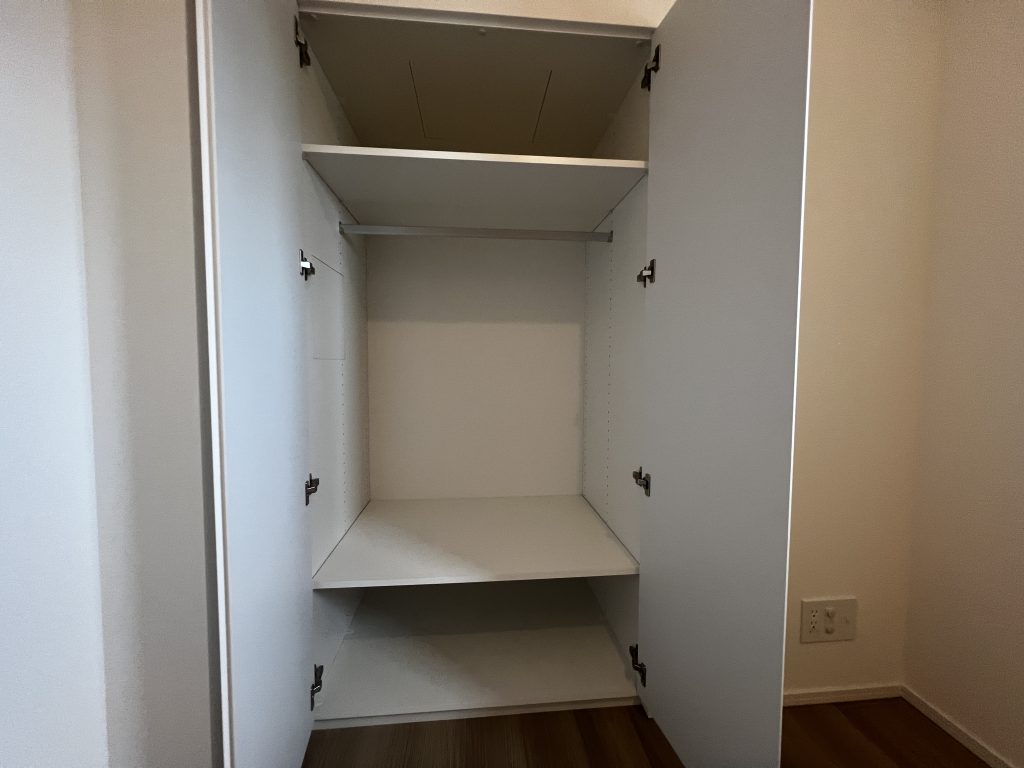 上段の棚には、シーズンオフの洋服や布団、普段使わない小物などを収納するのに便利です。