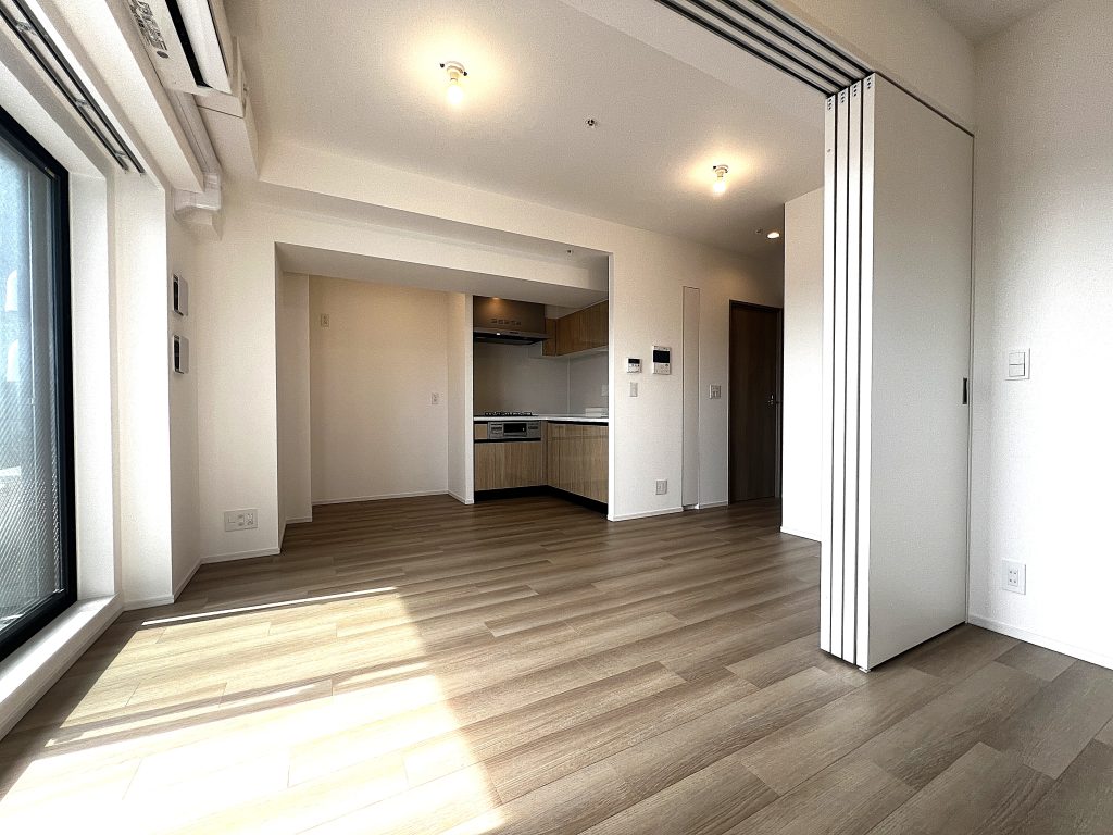 広々としたLDKは、日差しがたっぷりと差し込む明るい空間です。