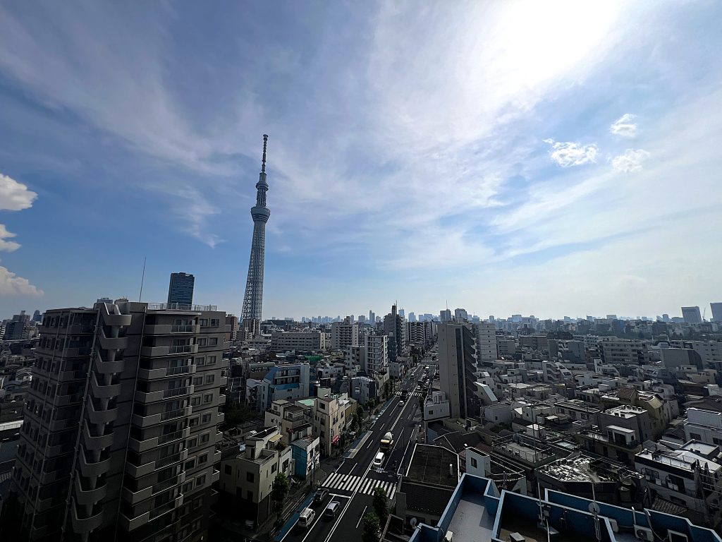 遠くにそびえ立つ東京スカイツリーが、日々の生活に彩りを与えます。