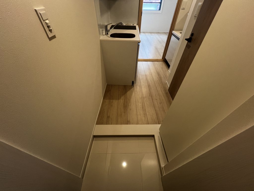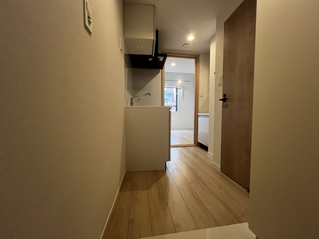 広々としたスペースではありませんが、玄関から奥にかけて明るい色合いの床材と壁が、お部屋全体を広く見せてくれます。