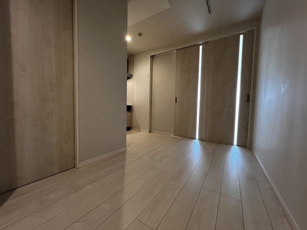 壁面は明るいベージュの木目調パネルで、ホテルライクな清潔感と落ち着いた雰囲気を醸し出しています。