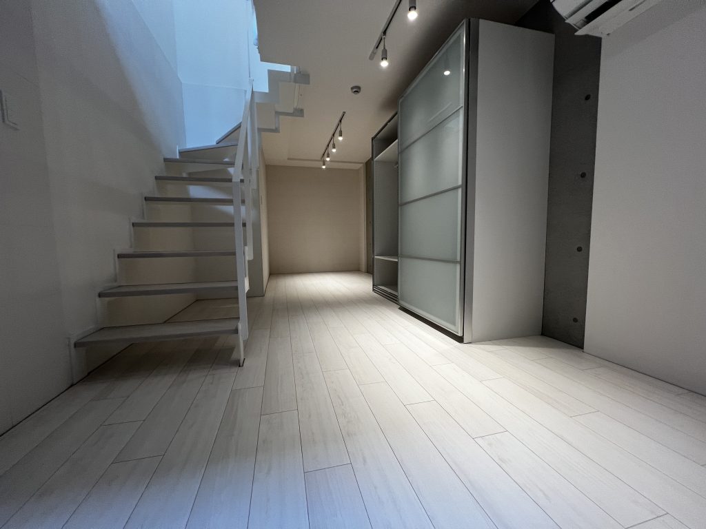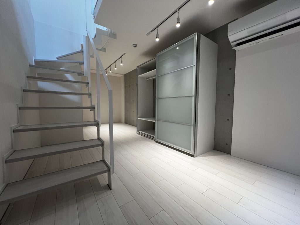ホワイトフローリングが映える!吹き抜けのような開放感のデザイナーズメゾネット。
