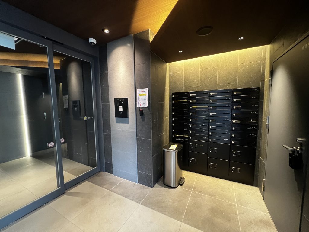 エントランスの奥には、オートロックや宅配ボックスなどの設備が整っています。