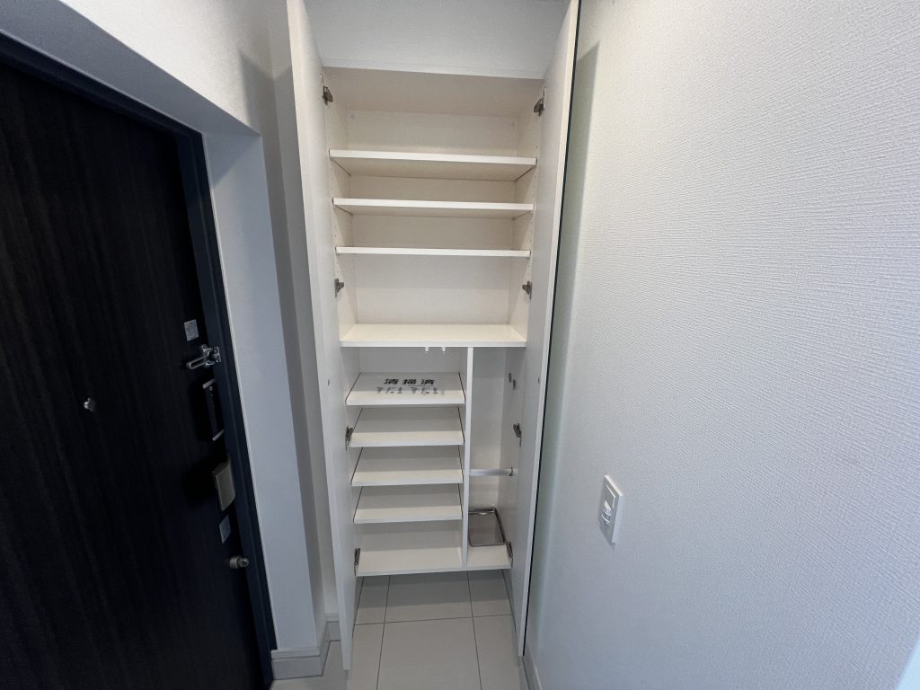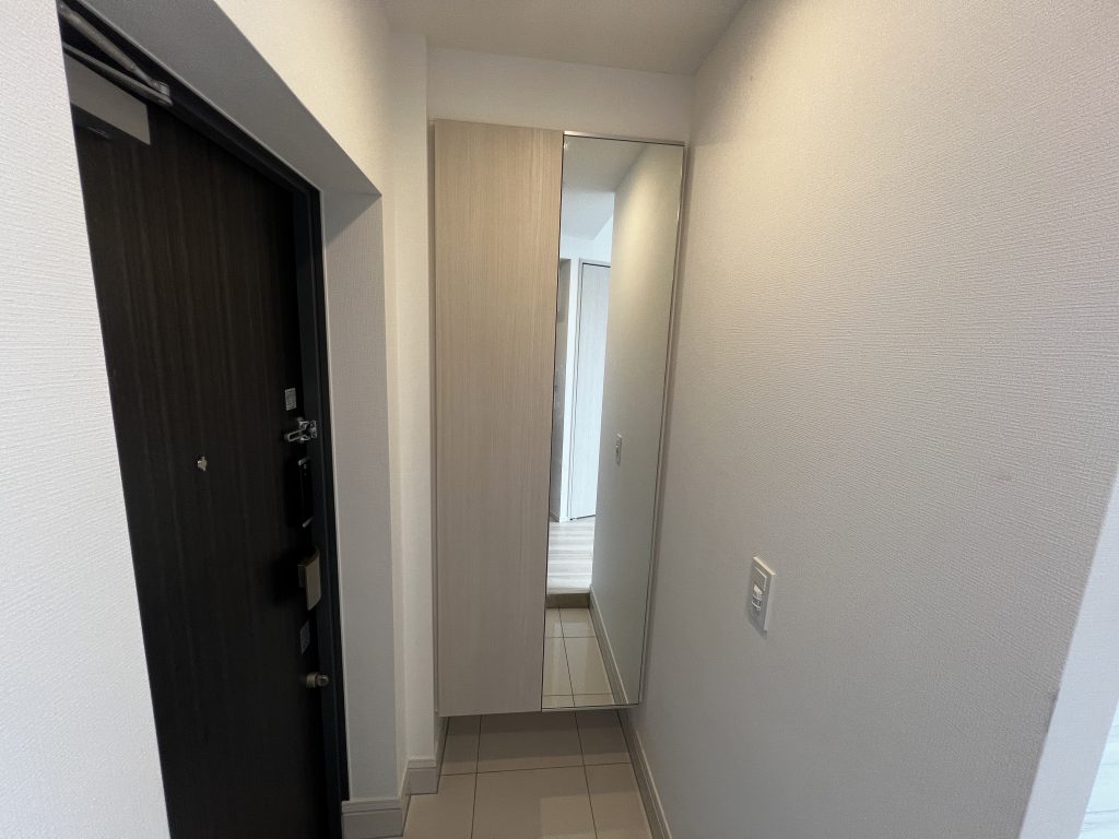 シューズボックスには大きな全身鏡が設置され、出勤前のヘアメイクやドレス、靴まで、完璧な状態を最終チェックできます。