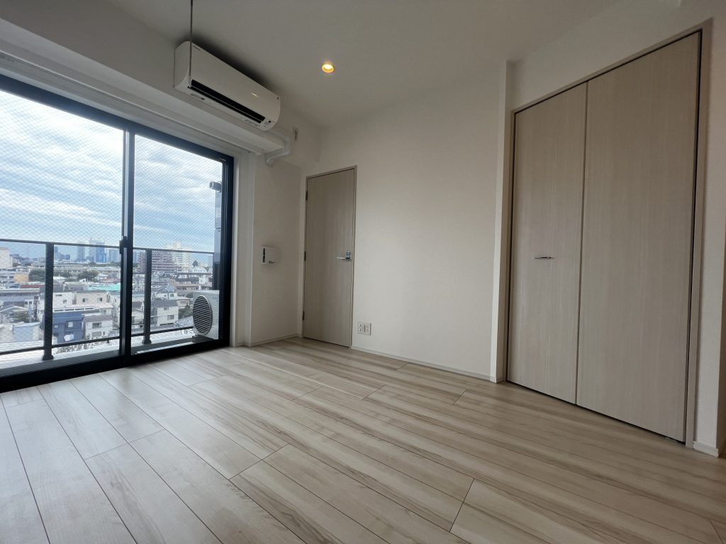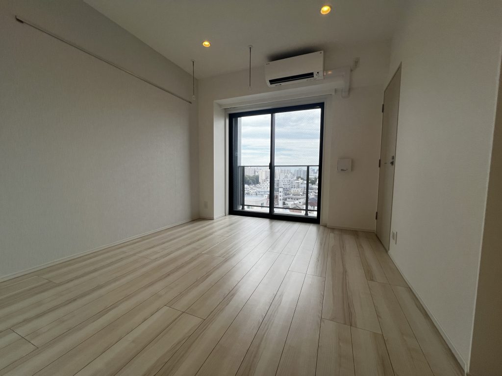 室内はダウンライトと大きな窓のおかげで、部屋全体が明るく大きな窓からは新宿の街を一望できる眺望が広がります。