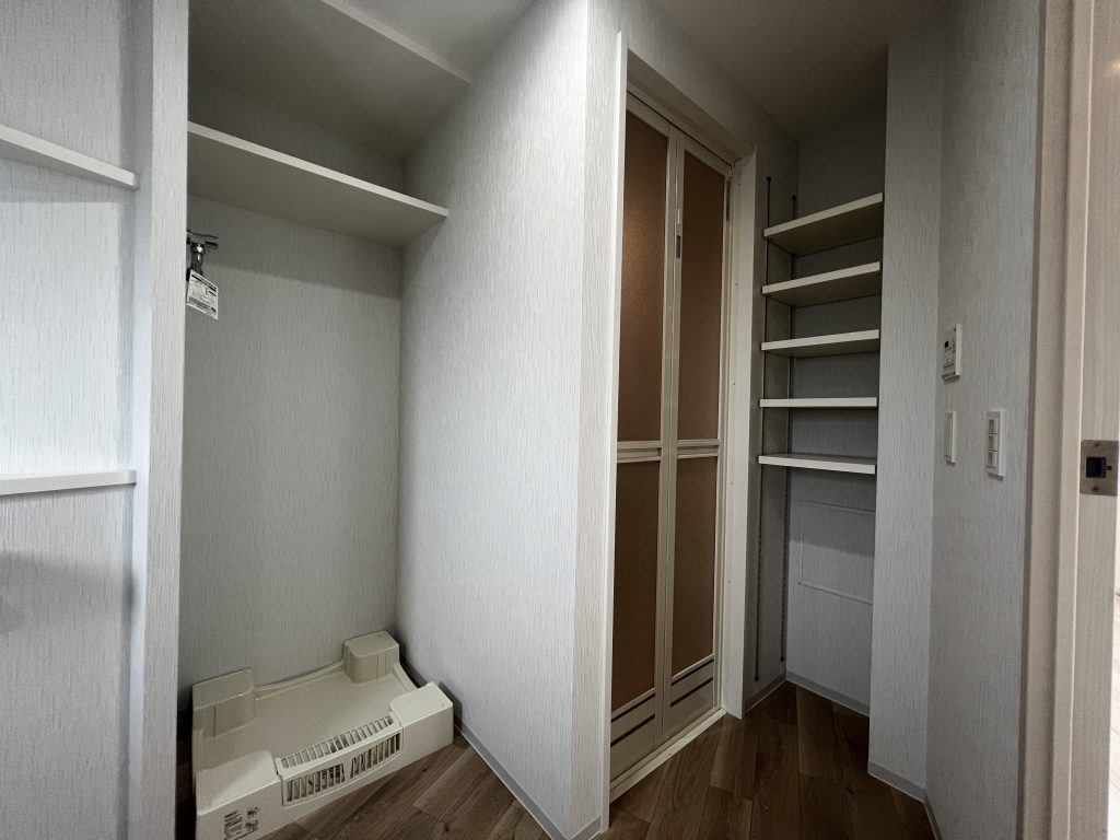パウダールーム内に洗濯機置場を設置