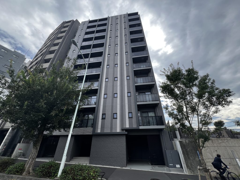 物件は2022年9月築の耐震性、防音性にも優れた鉄筋コンクリート造、外観は高級感あるタイル貼りの地上11階建て。