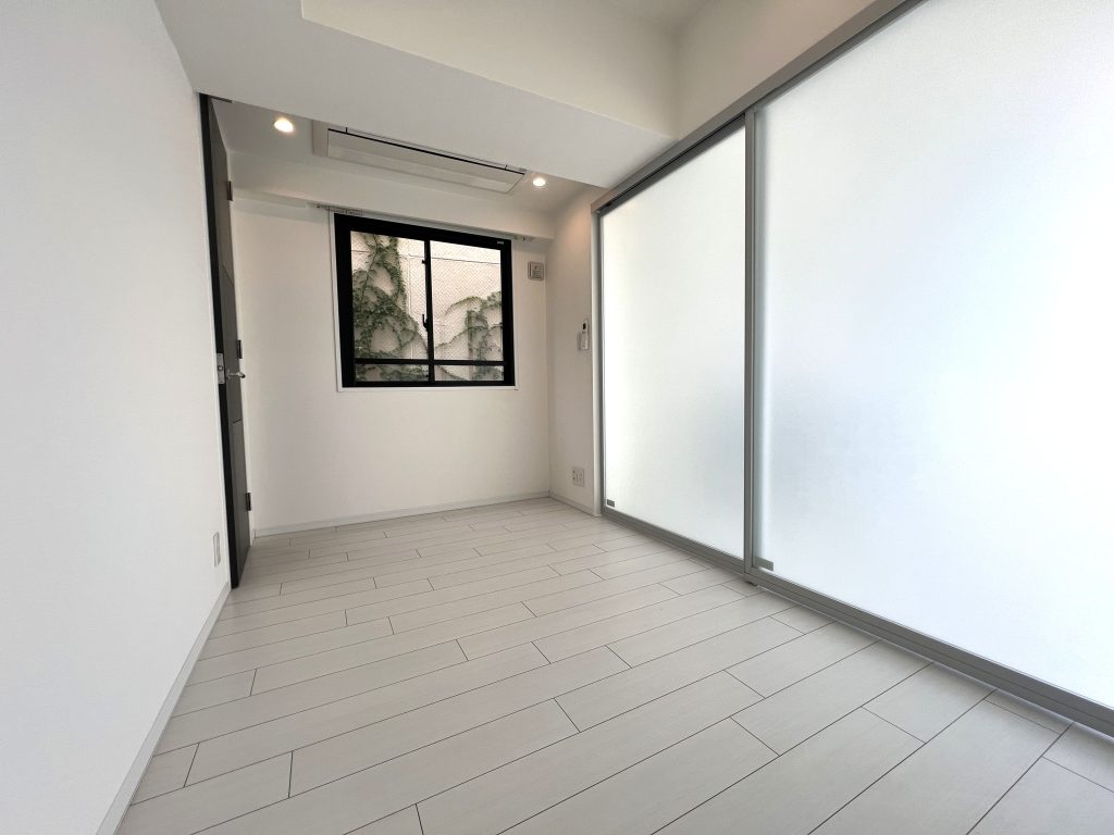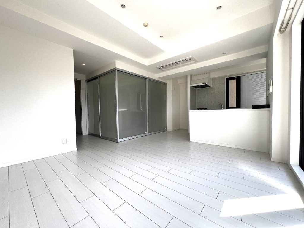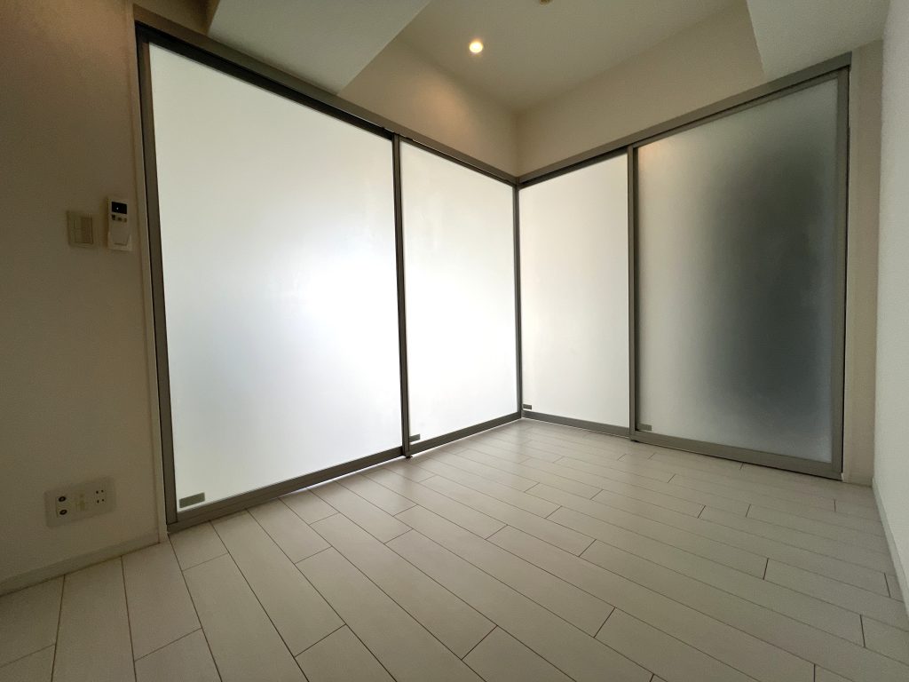 リビングと隣接する洋室は、デザイン性の高い半透明のスライドドアで仕切られています。