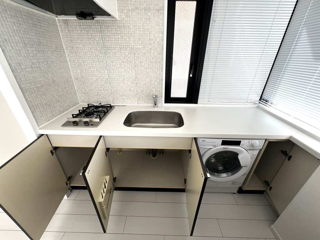 - カウンター下には、ドラム式洗濯乾燥機をビルトイン。