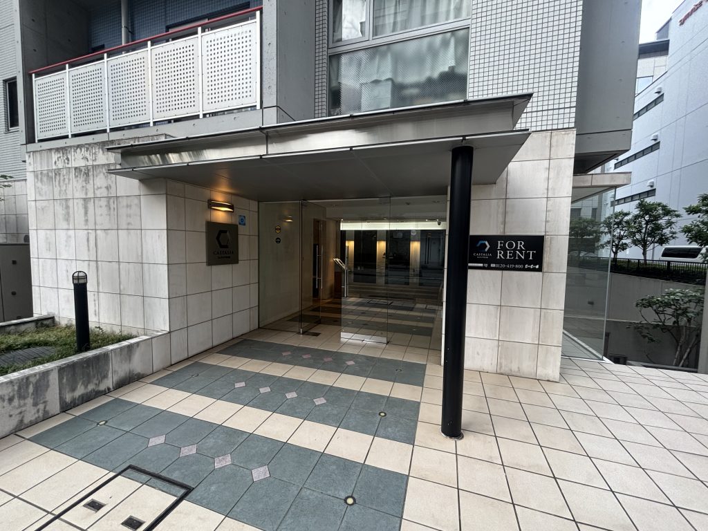 落ち着いた色合いと、街路に面したしっかりとしたエントランスは、物件の高いセキュリティレベルを予感させます。