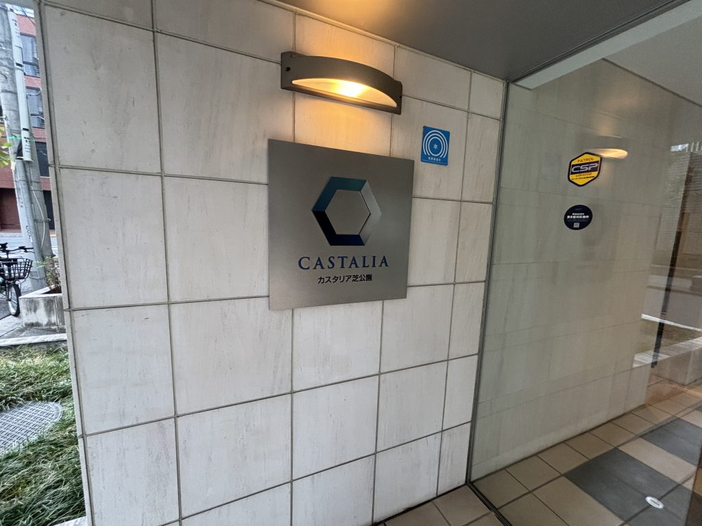 都会的なデザインのロゴとプレートは、この物件が質の高い暮らしを提供する「カスタリア」シリーズであることを示しています。