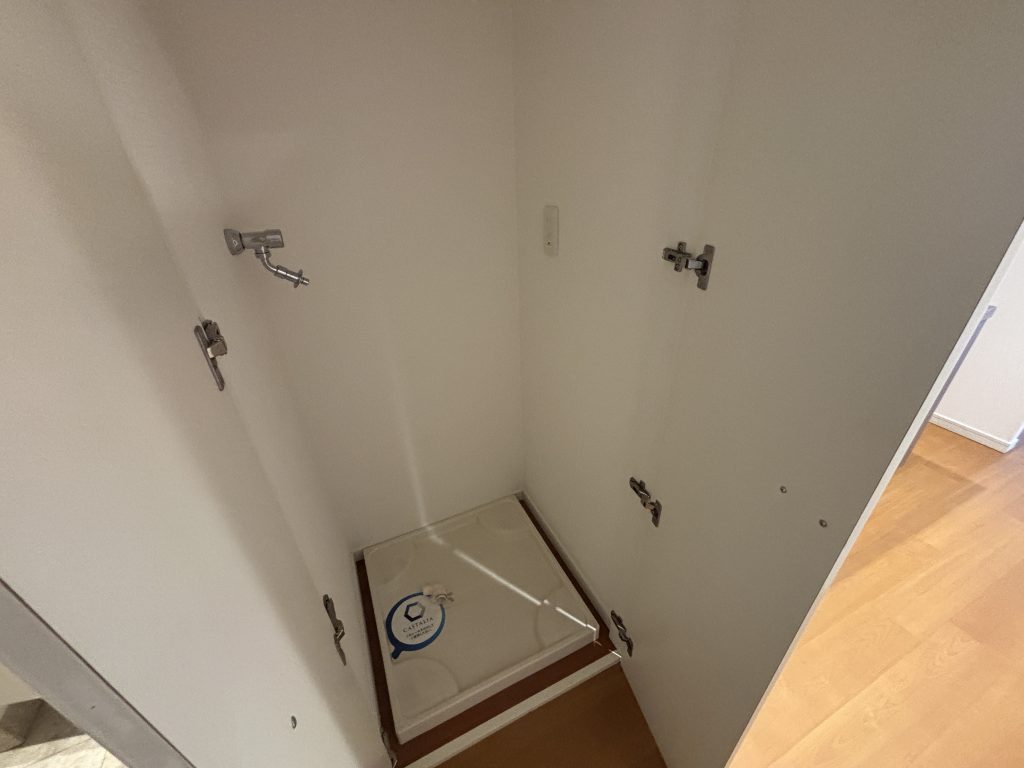帰宅が深夜になっても音を気にせず洗濯機を回せる室内洗濯機置き場。