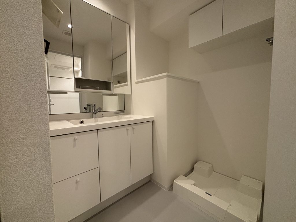 三面鏡の独立洗面台が設置され、あらゆる角度からヘアセットやメイクをチェックできるため、仕事へ向かう前の最終仕上げが快適に行えます。