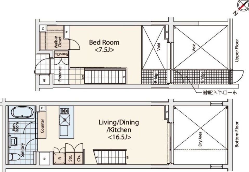 物件は、上下2層に空間が分かれたメゾネットタイプです。