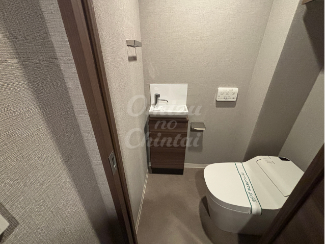 コントロールパネルは壁付けで、見た目もすっきりした温水洗浄便座が設置されております。
