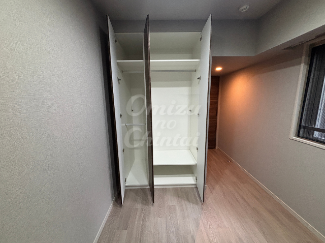洋室の壁一面には、天井まで届く大型のクローゼットが設置され、お仕事で必要なドレス、スーツ、小物など、かさばるアイテムも収納できます。