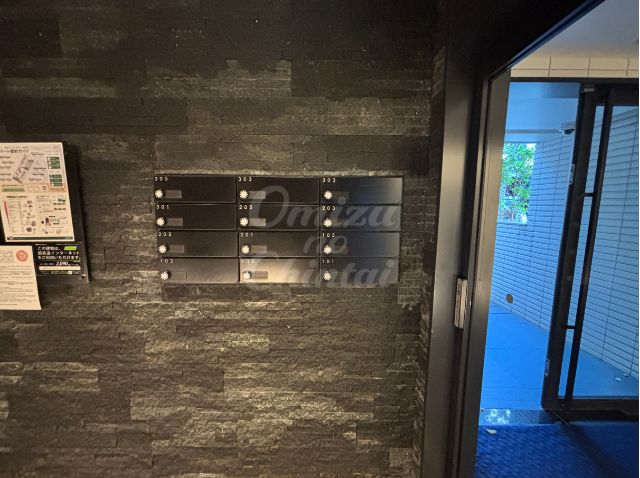エントランスの内側に設けられた集合ポストは、建物のモダンな世界観を崩すことなく、利便性を追求したデザイン。