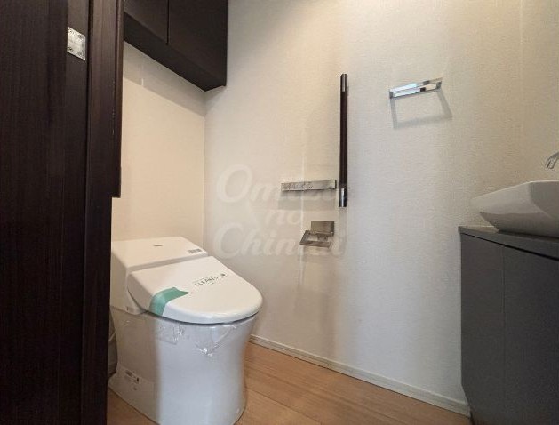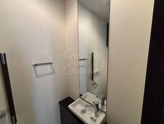 トイレとは別に、独立したコンパクトな手洗いカウンターが設置されており、衛生面への配慮と高級感を両立させています。