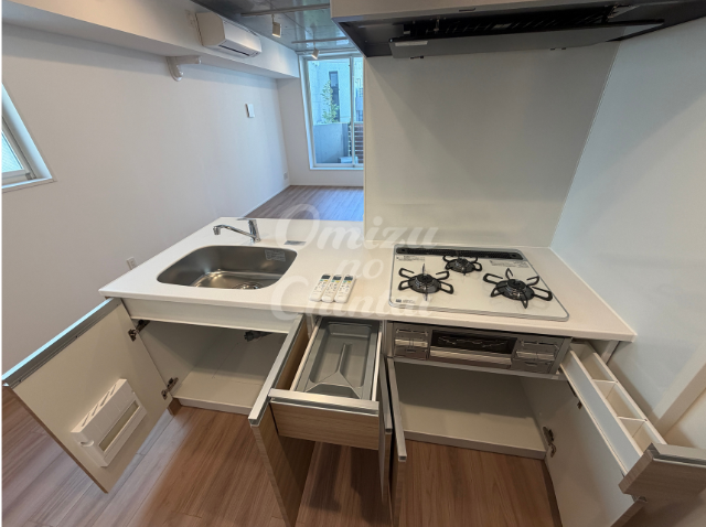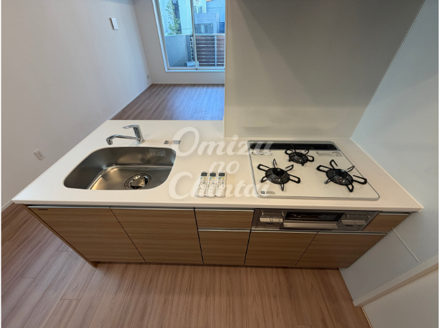 キッチンは3口のガスコンロとグリルを備えており、複数の料理を同時にこなせる本格派の仕様です。