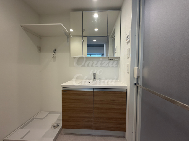 三面鏡タイプの独立洗面台が設置され、ヘアセットの際の後頭部のチェックもスムーズに行えます。