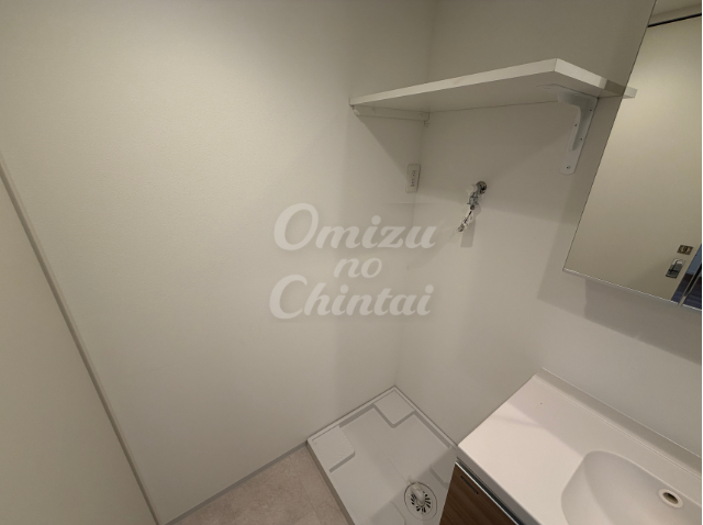 洗濯機専用のコンセントと水栓が高い位置に配置されており、大型の洗濯機も設置可能です。
