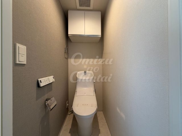 白を基調としたクリーンな内装に、高機能な温水洗浄便座を標準装備。