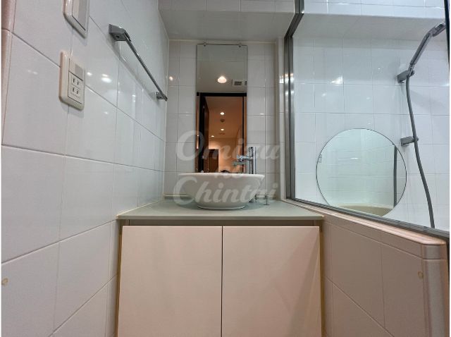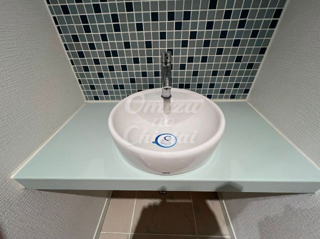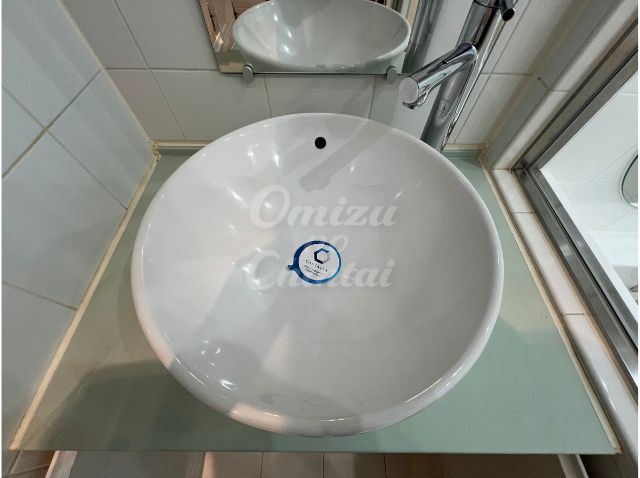 高級ホテルのようなベッセル式(置き型)の洗面ボウルを採用。