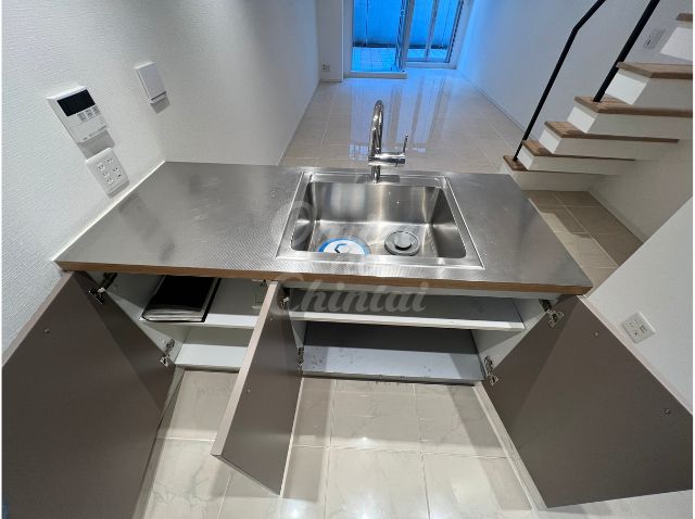 シンク下には、無駄な配管を抑えて収納スペースを確保。