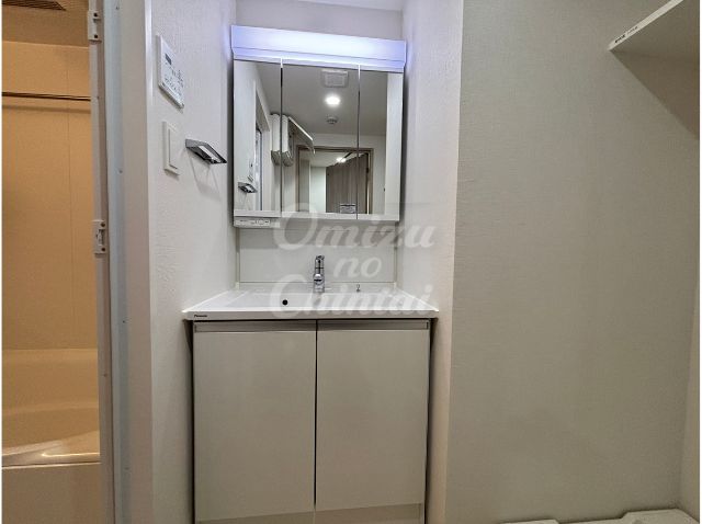 独立洗面台には、ヘアセットに欠かせない三面鏡を採用。
