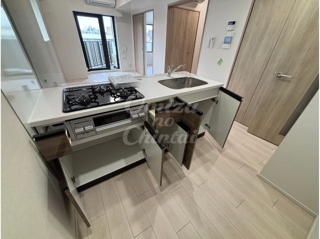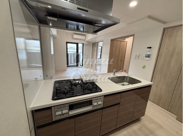 お料理をしながらリビングのテレビを見たり、お気に入りの音楽を楽しんだり、「家事の時間」を「自分の時間」として楽しめる、このお部屋の特等席です。